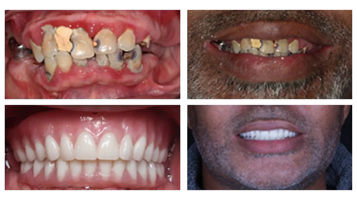 Full arch dental implants provide patients with brand new teeth by utilizing a permanent, titanium-reinforced bridge that can be secured with four to six dental implants. This allows us the flexibility to strategically place the implants in the areas in which the bone is most dense, reducing our need for bone grafting and other supporting treatments. Please keep in mind that we can help people in nearly any situation because of our team approach to Full Mouth Implant Cases.